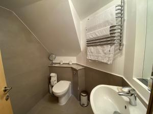 Accommodation comprises three beds spread across two bedrooms along with a sofa bed in the living area. The fully equipped kitchen offers an oven, stovetop, refrigerator, dishwasher, microwave, toaster, coffee machine and tea making facilities complete with kitchenware plus a dining table for indoor meals. Both bathrooms include walk-in showers without steps, one features an additional toilet alongside standard amenities such as hairdryer towels and linens are provided throughout.