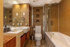 Inside the apartment, guests will find two beds along with one bathroom equipped with complimentary toiletries including shampoo, conditioner, body soap, hairdryer and both bathtub and shower options. The fully equipped kitchen boasts an oven, stovetop, refrigerator, dishwasher, microwave toaster and electric kettle as well as tea and coffee making facilities. Additional room amenities include towels, bed linen with feather and non-feather pillows available upon request, ironing facilities, wardrobe, work desk, sofa bed, heating, clothes drying rack, carpeted floors, dressing room seating area.