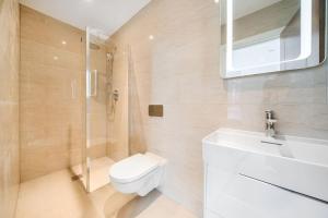 The fully fitted kitchen includes an oven, dishwasher, refrigerator, microwave and tea and coffee making facilities complemented by a washing machine within the unit. Additional amenities include heating, an iron, work desk, baby cot or crib availability along with smoke detectors ensuring safety during your stay.
