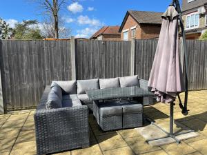 The apartment was well equipped with a large wardrobe, iron board, enough hangers, and a fully equipped kitchen. The host Frankie was very helpful and ensured basic amenities like towels, handwash, and shower gel were stocked. The garden at the back had a barbecue pan and a private patio. The location was good with convenient stores nearby, Highams Park station just a km away, bus station close by, and easy access to Excel London at Custom House as well as city attractions like Oxford Circus or Westminster.
