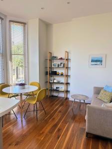 Accommodation comprises one bedroom with one bed and a private bathroom featuring a shower along with complimentary toiletries such as shampoo, conditioner, body soap and hairdryer. The kitchen area includes an oven, stovetop, refrigerator, toaster, electric kettle and full kitchenware plus tea and coffee making facilities. Additional room amenities include towels provided for guests’ convenience, ironing equipment, hardwood flooring, seating area with sofa, washing machine, heating system, bed linen, wardrobe or closet space, clothes drying rack as well as non-feather synthetic pillows.