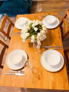 Accommodation comprises two separate bedrooms along with one bathroom equipped with a bathtub, shower, hairdryer, complimentary toiletries including shampoo and conditioner, as well as body soap. The fully fitted kitchen features modern appliances such as an oven, stovetop, refrigerator, dishwasher, microwave toaster coffee machine electric kettle and kitchenware for convenient meal preparation. Additional room amenities include a flat-screen TV in the living area washing machine sofa work desk heating ironing facilities clothes drying rack wardrobe synthetic non-feather pillows bed linen towels and an ironing board.