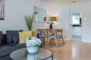 Questo appartamento con due camere da letto dispone di un soggiorno dotato di TV a schermo piatto con servizi di streaming, pavimenti in legno massello e divano letto per ulteriore comfort. La cucina completamente attrezzata include forno, microonde, piano cottura, frigorifero, tostapane, macchina per il caffè e bollitore elettrico oltre a tutti gli utensili necessari più un tavolo da pranzo per gustare i pasti al coperto.