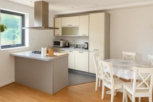 Inside the apartment, guests will find two bedrooms furnished with beds along with a fully equipped kitchen featuring a stovetop, refrigerator, dishwasher and oven complemented by a dining table and electric kettle. The living area includes a sofa and flat-screen TV for relaxation, while additional conveniences such as heating, ironing facilities including an iron and clothes drying rack are provided alongside towels and bed linen.