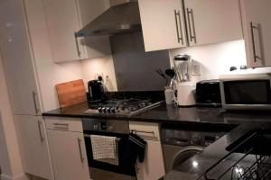 Inside, guests can enjoy two separate bedrooms with four beds in total, along with a bathroom equipped with a bathtub or shower and complimentary toiletries such as shampoo, conditioner, body soap, and hairdryer. The fully equipped kitchen boasts modern appliances including an oven, stovetop, refrigerator, microwave, dishwasher as well as tea and coffee making facilities complemented by kitchenware and a dining table.