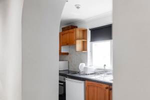 Inside the accommodation, guests will find a fully equipped kitchen featuring a refrigerator and microwave alongside a tumble dryer for clothes care. The apartment contains one bed with heating provided for comfort, additional room amenities include towels, bed linen, ironing facilities with an iron and ironing board, washing machine access as well as a flat-screen TV.