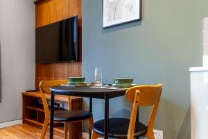 Guests have access to a full kitchen equipped with an oven, stovetop, refrigerator, dishwasher and electric kettle for convenient meal preparation. Additional amenities include a washing machine for laundry needs and entertainment options such as a flat-screen TV alongside comprehensive internet services offering free WiFi coverage throughout the entire unit. Parking is available on site while safety features include smoke detectors and carbon monoxide detectors.