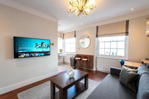 The apartments provide free WiFi available throughout all areas along with flat-screen TVs supporting streaming services like Netflix, bedside sockets enhance guest comfort for charging devices securely while safety features include smoke detectors and carbon monoxide detectors ensuring peace of mind.