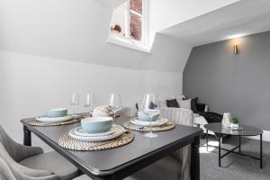 Inside the apartment, guests will find a fully equipped kitchen complete with an oven, microwave, stovetop, refrigerator, toaster, electric kettle and kitchenware suitable for preparing meals at leisure. The living area includes a seating area with a sofa as well as a dining table for group meals or gatherings.