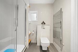 This apartment features one separate bedroom with one bed, complemented by a bathroom equipped with a shower, complimentary toiletries including shampoo and body soap, an additional toilet, hairdryer, and private bathroom facilities. The fully equipped kitchen includes modern appliances such as a refrigerator, microwave, coffee machine, oven stovetop toaster dishwasher electric kettle and dining table to enjoy meals indoors.