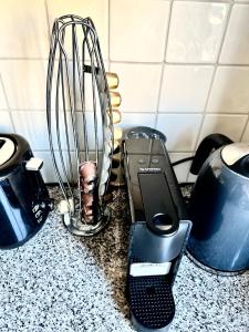 The fully equipped kitchen includes kitchenware alongside an oven refrigerator toaster coffee machine electric kettle tea-and-coffee-making facilities plus a dining table for meals indoors or on the balcony’s outdoor furniture set-up.The flat-screen TV provides entertainment options while safety features include smoke detectors.