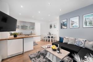 This accommodation features three separate bedrooms and two bathrooms equipped with bathtubs or showers and complimentary toiletries. Guests can prepare meals in the fully fitted kitchen that includes a stovetop, oven, refrigerator, dishwasher, microwave, toaster as well as tea and coffee making facilities including an electric kettle and coffee machine alongside kitchenware and a dining table.