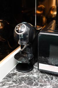 The accommodation features two beds in its single room along with carpeted floors and a seating area equipped with a flat-screen TV and sofa bed for added comfort. The kitchen is fully fitted with amenities including an oven, stovetop, microwave, toaster, coffee machine as well as tea and coffee making facilities allowing guests to prepare meals conveniently.