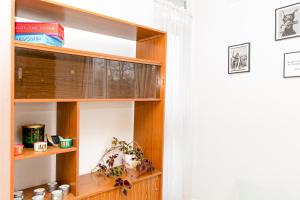Additional amenities include heating, an iron with ironing board, clothes drying rack, wardrobe closet and seating area providing comfort throughout the stay. Safety features comprise smoke detector and fire extinguisher located within the apartment itself along with a private entrance ensuring privacy.