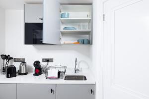 Each studio contains one bed along with a well-fitted kitchenette offering a refrigerator, microwave, toaster, kitchenware and tea and coffee making facilities including a coffee machine and electric kettle. Guests will find a private bathroom complete with shower and hairdryer as well as practical amenities such as heating, wardrobe or closet space, ironing facilities including iron and board, work desk, clothes drying rack and washing machine.