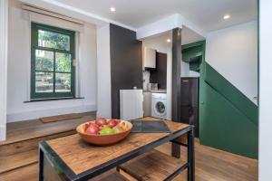 The accommodation features a separate bedroom and living room equipped with a flat-screen TV. The fully equipped kitchen contains an oven, stovetop, refrigerator, dishwasher as well as tea and coffee making facilities. A private bathroom comes complete with shampoo and a hairdryer for guest convenience.