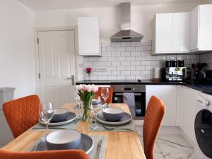 Meals can be prepared in the fully equipped kitchen which includes kitchenware, refrigerator, toaster, stovetop, oven microwave electric kettle and a dining table within the shared kitchen area. Entertainment options include free WiFi throughout the property along with satellite flat-screen TV channels. Additional amenities consist of washing machine availability inside the unit plus free parking on site along with safety features like fire extinguisher carbon monoxide detector and smoke detector.