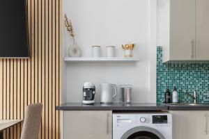 Inside the apartment, guests will find two beds along with a fully equipped kitchen featuring an oven, stovetop, refrigerator, microwave, toaster, coffee machine as well as tea and coffee making facilities. Additional conveniences include a washing machine and tumble dryer for clothes alongside ironing facilities such as an iron and ironing board. The living space offers hardwood flooring with heating throughout plus amenities like towels and bed linen.