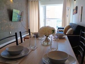 Le logement dispose d’une cuisine entièrement équipée comprenant un four, un lave-vaisselle, un réfrigérateur, un micro-ondes, un grille-pain ainsi qu’une bouilloire électrique. Vous y trouverez également le nécessaire pour cuisiner ainsi que des facilités pour préparer thé et café. Une table à manger et une chaise haute sont mises à disposition selon les besoins des enfants. La salle de bains privée est dotée d’une douche et offre des articles de toilette gratuits tels que shampoing, après-shampoing et savon corporel , elle comporte également un sèche-cheveux.
