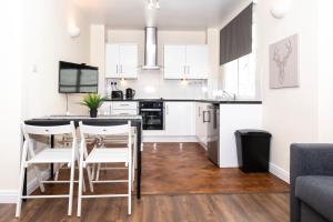 This one-bedroom accommodation features a separate bedroom alongside a living room fitted with a flat-screen TV and sofa bed for added comfort. The fully equipped kitchen includes an oven, microwave, stovetop, refrigerator, coffee machine, toaster, electric kettle and dining table allowing guests to prepare their own meals easily. The bathroom contains complimentary toiletries such as shampoo and body soap along with towels and bed linen provided for convenience.