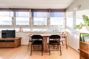 This spacious apartment offers two bedrooms with two beds alongside a fully equipped kitchen featuring an oven, stovetop, refrigerator, dishwasher, microwave, electric kettle and complete kitchenware collection for self-catering convenience. Guests will appreciate the private bathroom fitted with a hairdryer as well as amenities such as towels, bed linen, heating system, work desk iron with ironing board and wardrobe closet.