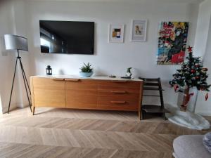 This accommodation offers a fully equipped kitchen with an oven, dishwasher, refrigerator, microwave, coffee machine and toaster alongside tea and coffee making facilities and a dining table with high chair for children. The unit contains one bed in the bedroom plus a bathroom fitted with both bathtub and shower options along with additional toilet facilities.