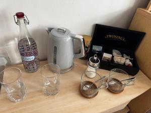 Each room includes a bed along with access to a shared bathroom outside the unit. Guests will find tea and coffee making facilities including an electric kettle in every room, as well as essential amenities such as heating, feather pillows, wardrobes or closets, carpeted floors, work desks, irons with ironing boards, bed linen and towels.