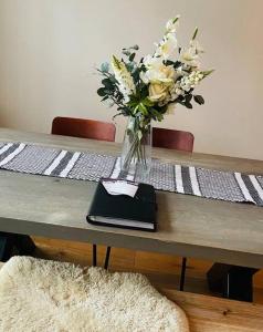 Inside the holiday home, guests can find two bedrooms furnished with three beds in total along with hardwood and carpeted flooring throughout the living space. The fully equipped kitchen features an oven, stovetop, refrigerator, dishwasher, microwave and toaster complemented by tea and coffee making facilities as well as a dining table for meals.