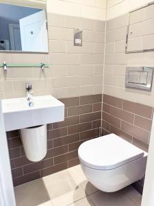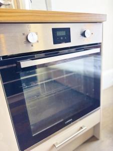 The apartment features one bedroom furnished with parquet flooring and one bathroom equipped with a shower and complimentary toiletries including body soap and shampoo. Guests can enjoy a fully equipped kitchenette that includes an oven, refrigerator, kitchenware, electric kettle, as well as a dining table for meals prepared on site. Additional in-room amenities include a washing machine, seating area with flat-screen TV, work desk, wardrobe or closet space, heating system, non-feather pillows for added comfort along with towels and bed linen.
