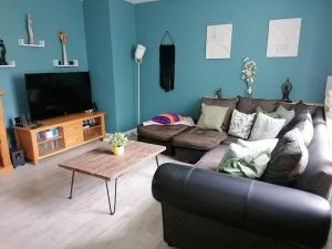 The accommodation comprises three separate bedrooms furnished with three beds, along with one bathroom that includes a shower and hairdryer. The kitchen area comes fully equipped with an oven, stovetop, refrigerator, microwave, dishwasher, toaster and all necessary kitchenware for preparing meals. Additional in-room amenities include an iron, towels, bed linen made of synthetic non-feather materials for comfort and hygiene as well as seating areas featuring sofas and work desks.