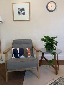 This one-bedroom apartment offers a private entrance for added privacy and comprises a living room with a flat-screen TV along with carpeted floors and a seating area. The fully equipped kitchen comes with an oven, dishwasher, refrigerator, microwave, coffee machine as well as kitchenware including an electric kettle and toaster alongside a dining table.