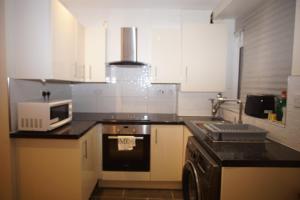 Accommodation comprises one bedroom with two beds, along with a living room featuring a sofa and flat-screen TV equipped with streaming services such as Netflix. The bathroom includes complimentary toiletries, a hairdryer, and either a bathtub or shower for guest comfort. A fully equipped kitchen comes complete with an oven, microwave, refrigerator, toaster, electric kettle as well as dining table facilities to prepare meals conveniently.