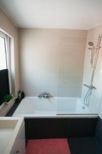 This air-conditioned holiday home features three separate bedrooms with four beds in total, along with two bathrooms that include a walk-in shower and either a bathtub or shower option. Guests can enjoy amenities such as towels, bed linen, heating, seating area, washing machine and television for added comfort.