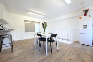 Gli ospiti possono usufruire dell’angolo cottura completamente attrezzato con elettrodomestici moderni quali bollitore elettrico, set per tè e caffè, microonde, tostapane frigorifero e lavastoviglie insieme agli utensili necessari alla preparazione dei pasti, i pasti possono essere consumati nell'area pranzo dotata di tavolo con sedute. Ulteriori comfort comprendono riscaldamento in tutto l’appartamento e rilevatori di fumo per la sicurezza.