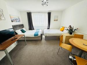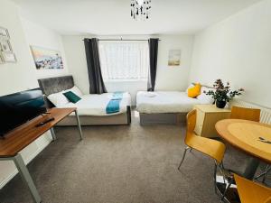 Tento studio byt obsahuje dva lůžka v rámci jednoho pokoje a má plně vybavený kuchyňský kout s troubou, varnou deskou, mikrovlnnou troubou, lednicí i pračkou pro větší pohodlí. Koupelna nabízí soukromé zařízení vybavené fénem na vlasy a zásobou šamponu pro komfort během pobytu.