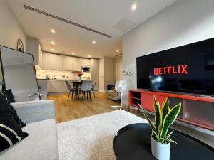Located in central London, the apartment 1600ft 2Bed 3Bath near Battersea Power Station, Private Gated & AC, 1000MB Fast Internet speed features air conditioning and fast free WiFi. It includes one room with a private entrance and offers views from its terrace. The property is just 2.8 km from Westminster Abbey and Victoria Train Station.