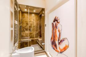 The apartment features two bedrooms furnished with three beds total, alongside two bathrooms equipped with walk-in showers and complimentary toiletries including shampoo, conditioner, body soap, bathrobes, and bidets. Guests can enjoy two living rooms offering seating areas and flat-screen TVs with streaming services. The fully equipped kitchen comes complete with an oven, microwave, dishwasher, refrigerator, coffee machine, toaster plus tea and coffee-making facilities.