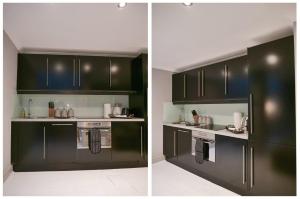 Este apartamento de un dormitorio dispone de sala con televisión y dos baños equipados con bañeras, secadores de pelo y artículos gratuitos como jabón corporal, champú y acondicionador. Los huéspedes pueden preparar comidas en la cocina americana totalmente equipada que incluye horno, placa vitrocerámica, lavavajillas, frigorífico, microondas y utensilios junto con facilidades para té y café además de una mesa comedor para mayor comodidad.