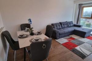 The accommodation comprises one bedroom with a sofa bed, a fully equipped kitchen for preparing meals, and one bathroom featuring an in-room hot tub. Additional comforts include ironing facilities with an iron and board, a washing machine, and a flat-screen TV.