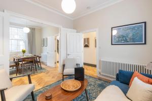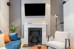 Accommodation features two bedrooms with three beds in total, complemented by a living room outfitted with a flat-screen TV offering streaming services such as Netflix and satellite channels. The fully equipped kitchen contains modern appliances including an oven, stovetop, dishwasher, microwave, refrigerator, coffee machine as well as tea and coffee making facilities. Guests will also find ironing equipment along with heating and hardwood or carpeted flooring throughout.