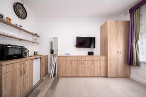 Guests benefit from high-speed internet access available throughout the apartment along with television entertainment options. The kitchen area features full facilities such as an oven, refrigerator, electric kettle, kitchenware for cooking needs, while safety features include smoke detectors ensuring peace of mind during your stay.