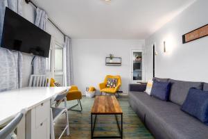 La cocina americana está totalmente equipada con electrodomésticos modernos: frigorífico, lavavajillas, horno, microondas, tostadora hervidor eléctrico y cafetera para preparar comidas cómodamente. Además cuenta con WiFi gratuito en todo el apartamento y dispositivos de seguridad como extintor contra incendios junto con detectores individuales de monóxido de carbono y humo.