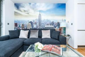 The apartment comprises one bedroom with two beds, a living room area with a sofa bed and seating space, as well as one bathroom equipped with both a bathtub and shower accompanied by complimentary toiletries such as shampoo, conditioner, body soap, and towels. Guests can enjoy hardwood flooring throughout along with amenities like heating, an iron, wardrobe/closet space, non-feather pillows for comfort, a baby cot or crib if needed.