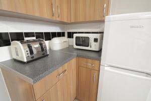 Accommodation comprises one bedroom and a living room with heating and a flat-screen TV featuring cable and satellite channels. The fully equipped kitchen contains an oven, microwave, refrigerator, kitchenware as well as laundry facilities with a washing machine. Guests will also find ironing equipment including an iron and ironing board alongside bed linen and towels.