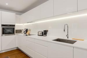 Apartament komfortowo mieści gości, oferując dwie łazienki wyposażone zarówno w wannę, jak i prysznic oraz bezpłatne kosmetyki. W pełni wyposażony aneks kuchenny zawiera piekarnik, płytę grzewczą, lodówkę, zmywarkę, mikrofalówkę oraz stół jadalny wraz z krzesełkiem dla dziecka. Do dyspozycji gości są także pralka oraz część wypoczynkowa wyposażona w klimatyzację, ogrzewanie, rozkładaną sofę i miejsce do siedzenia.