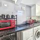 L’appartamento presenta una cucina completamente attrezzata con microonde, tostapane, bollitore elettrico, frigorifero e tavolo da pranzo accanto all’angolo cottura per la preparazione dei pasti. L’area soggiorno comprende un angolo salotto con divano letto che può essere integrato da letti supplementari pieghevoli, sono inoltre disponibili ferro e asse da stiro per il comfort degli ospiti. Il riscaldamento assicura il comfort del pavimento moquettato durante i mesi più freschi.