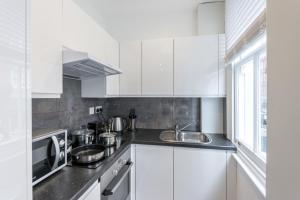 The apartment offers a separate bedroom along with a living room featuring a sofa bed and flat-screen TV. Guests can prepare meals in the full kitchen which comes complete with an oven, dishwasher, microwave, refrigerator, toaster, electric kettle, kitchenette area as well as a dining table. The bathroom contains both shower facilities and a hairdryer.