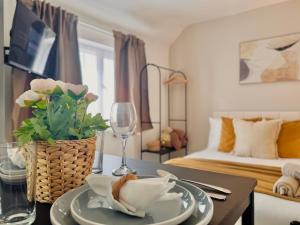 Das Apartment mit einem Schlafzimmer verfügt über eine Kochnische mit Backofen, Herdplatte, Mikrowelle, Kühlschrank und Küchenutensilien sowie einem Wasserkocher und Toaster zur komfortablen Zubereitung von Mahlzeiten. Für angenehme Temperaturen sorgt eine Heizung im gesamten Objekt, die Unterkunft bietet außerdem ein Bett für den Schlafkomfort.