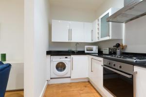Inside the apartment guests will find one bedroom furnished with one bed alongside a seating area that includes a sofa and work desk. The bathroom features both a bathtub and shower equipped with complimentary toiletries such as shampoo, body soap and towels as well as a hairdryer for convenience.