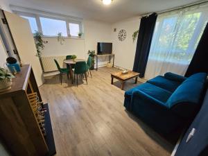 This non-smoking accommodation offers a fully equipped kitchen with a dining table for meal preparation and enjoyment as well as storage space for food items. The living area features a sofa bed and an additional sofa alongside a flat-screen TV with streaming services access such as Netflix for entertainment options during your stay.